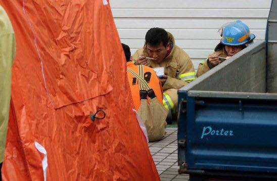 »çÁø¿¡¼± ÈÀç Áø¾Ð¿¡ ÅõÀÔµÈ ¼Ò¹æ°üµéÀÌ ÄŶó¸é°ú ºÐ½Ä µîÀ¸·Î ³¢´Ï¸¦ ¶§¿ì´Â Àå¸éÀÌ ´ã°Ü ÀÖ´Ù.