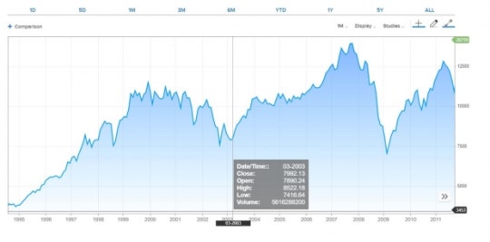 À̶óÅ©ÀüÀÇ ¿øÀÎÀÌ µÆ´ø 9¡¤11»çÅ´ 2001³â 9¿ù ÅÍÁ³½À´Ï´Ù. ´Ù¿ì Áö¼ö´Â 9¿ùÃÊ 9600´ë¿¡¼ 9¿ù20ÀÏ¿¡´Â 8000±îÁö ¶³¾îÁø µÚ ¹ÝµîÇß½À´Ï´Ù. 2002³â 3¿ù¿¡ 10600±îÁö ¿Ã¶úÁö¸¸ ÀÌ°Ô °íÁ¡À̾ú½À´Ï´Ù. 2003³â 3¿ù20ÀÏ ´Ù¿ìÁö¼ö´Â 8200±îÁö ¶³¾îÁ³½À´Ï´Ù.