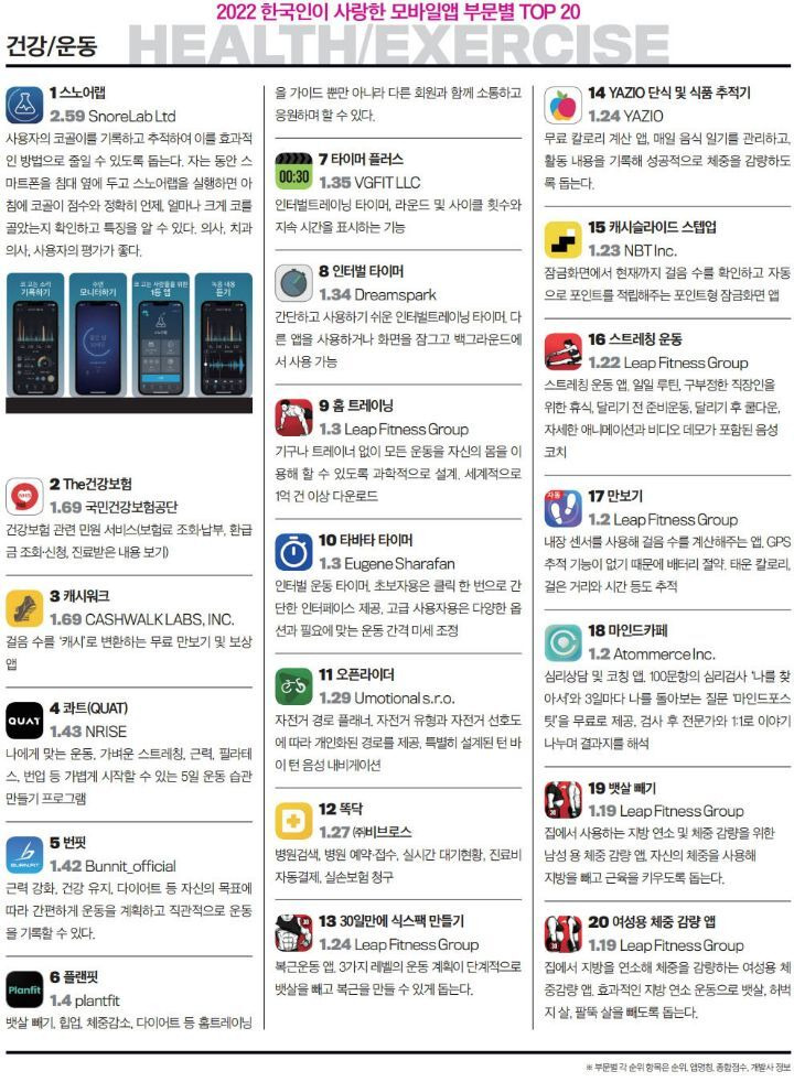 2022 Çѱ¹ÀÎÀÌ »ç¶ûÇÑ ¸ð¹ÙÀÏ¾Û ºÎ¹®º° TOP 20